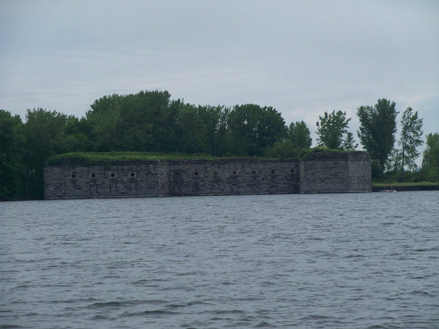 Day two, We woke up to heavy ran on deck. Fed and took dogs for a walk and were under way before 7:30. Passed Fort Montgomery right before approaching Canada. This fort is better know as Fort Blunder because it was accidently built it in Canada and it had to be moved South to US territory.